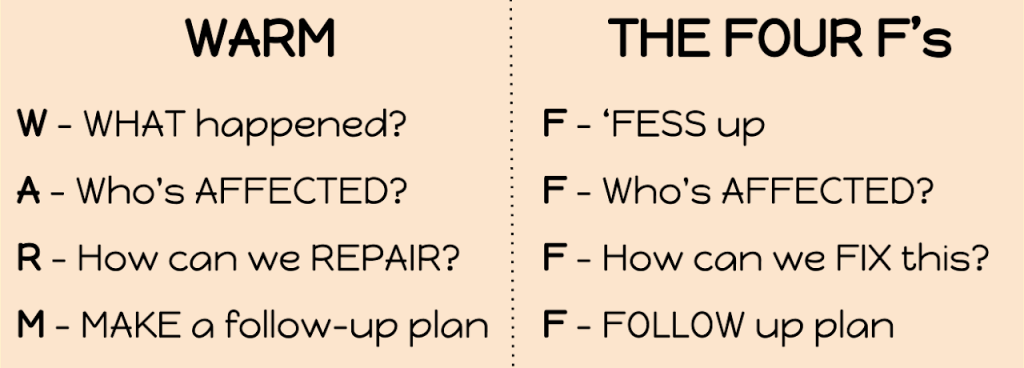 Colfax uses the Restorative Practices approach when students face challenging situations. We use a problem solving circle, where certain language is used to guide conversation and help repair relationships. You can support your child by using similar language at home.